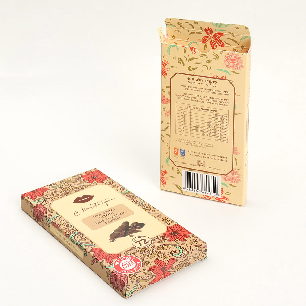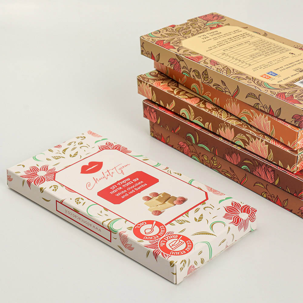 Estas cajas de embalaje están hechas a medida para chocolates, utilizando papel de alta calidad como material base. El papel es duradero, ecológico y biodegradable, y la avanzada tecnología de impresión personalizada permite una gran variedad de patrones y colores. Las cajas de embalaje de papel para chocolate con impresión personalizada, con su diseño personalizado y textura de alta calidad, aportan un brillo único a los chocolates, garantizando que cada dulce transmita una sinceridad y un sentimiento único.