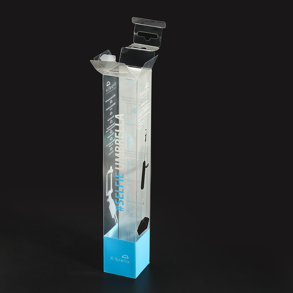 This transparent packaging box designed for umbrellas allows consumers to intuitively experience the product's appearance and design details through high-definition display. The plastic box features a hanging structure with pre-drilled holes at the top, facilitating display needs in retail settings, saving space while enhancing shelf appeal. Customized services can precisely match the display and protection needs of different products, balancing practicality and brand image, making each product a visual focal point.
