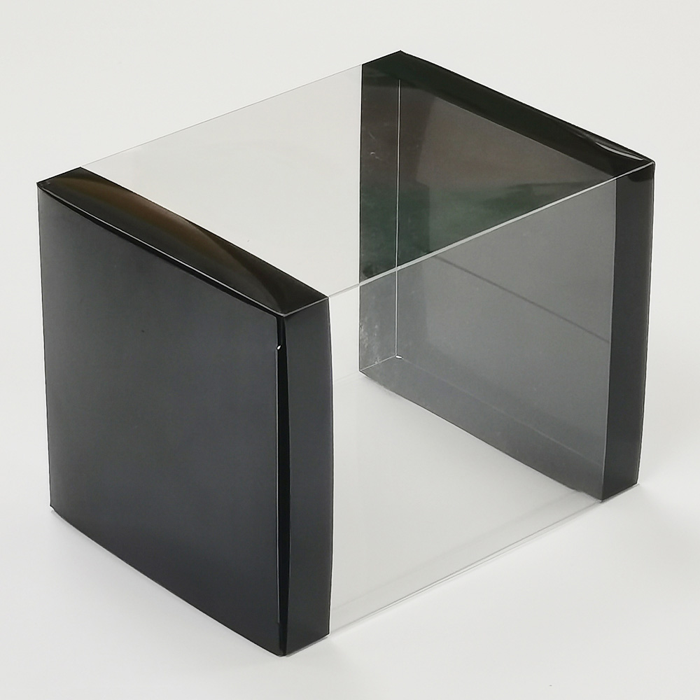 Esta caja de regalo minimalista de plástico transparente, fabricada en PET de alta transparencia, transforma su contenido en una exposición artística que llena el espacio. Un borde negro impreso alrededor del embalaje crea un contorno geométrico y limpio para el espacio transparente. Su diseño plegable permite un uso flexible, tanto desplegada como plegada, ahorrando espacio.